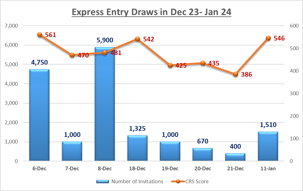 Canada opened record seven Express Entry draws in December 2023 month and invited massive 15,045 candidates to apply for Canadian Permanent Resident (PR) Visa, which is an astounding number. The IRCC is likely to keep this momentum in the New Year 2024.